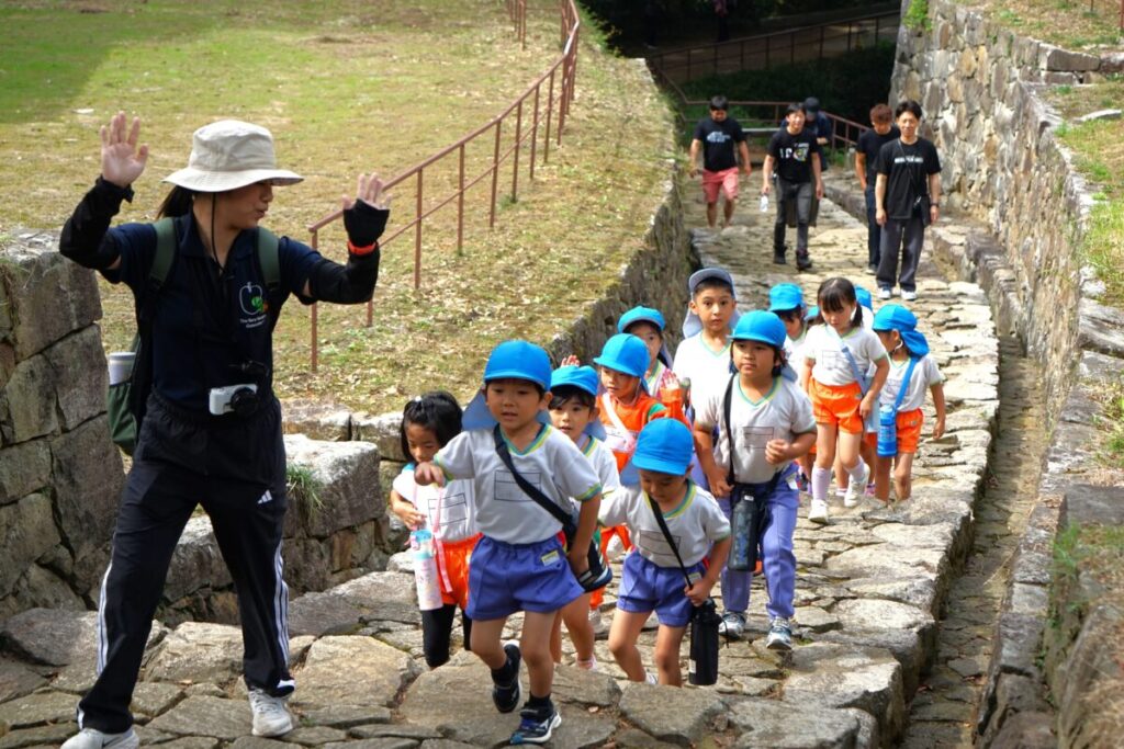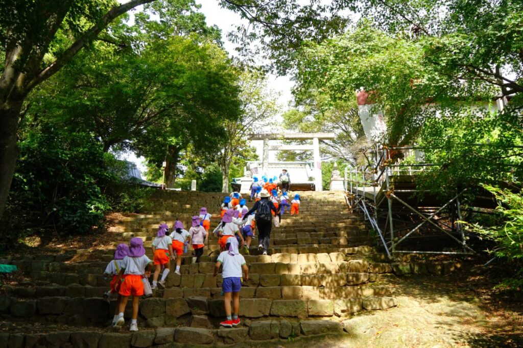 最近は毎日運動会の練習をがんばっているので、今日は息抜きで園バスで金山まで出かけました。金山城跡を通り新田神社まで歩いて、お参りしてきました。途中山登りにも挑戦しました。帰りは呑龍様の公園の大型遊具でたっぷりと遊びました。みんなずっと元気いっぱいでした。