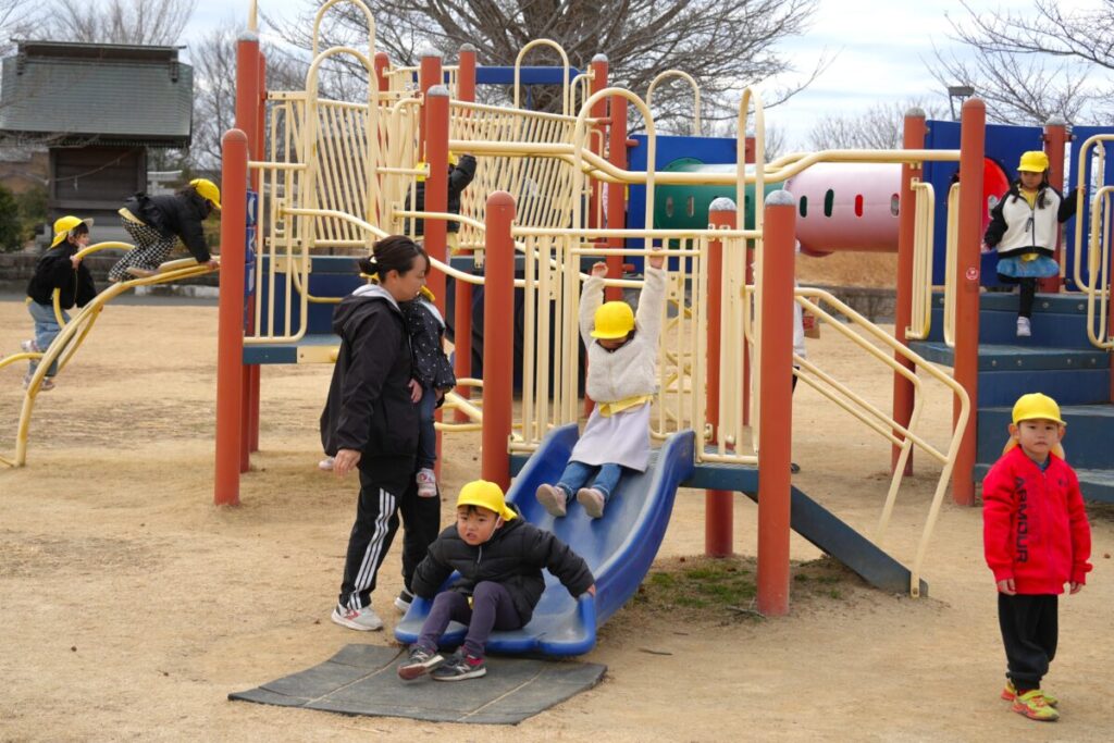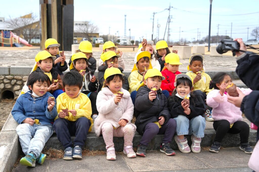 北風を心配していましたが、穏かな曇り空の中、今日は年中組と備前島公園まで歩いて行ってきました。40分ほどかかりましたが、公園では遊具や山で元気いっぱい沢山遊びました。途中で園長先生から「やきいも」のプレゼントがありました。みんなで美味しく食べました。帰りはバスに乗って園に戻りました。