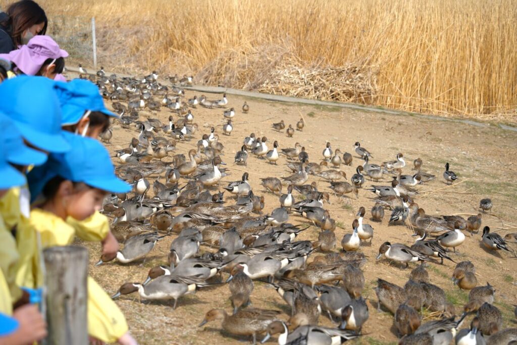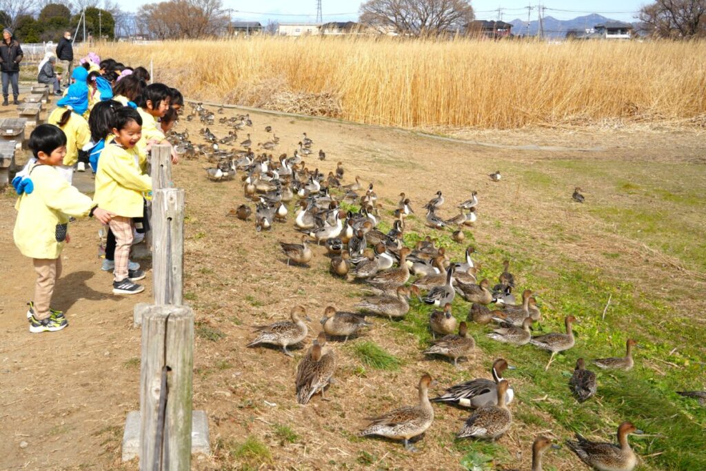 5年ぶりに白鳥の飛来で有名な多々良沼とガバ沼に行ってきました。多々良沼にはあまり白鳥はいなかったのですが、景色がとてもきれいでした。近くの公園で沢山遊んだ後は、ガバ沼に見学に行きました。管理の方がエサを持ってきてくれ、みんなで鴨のエサやりをしました。近くまで来た大量の鴨に園児達は大喜びでした。管理の方に全員で感謝の挨拶をして帰りました。3月になると白鳥は北極やシベリアに帰ります。大自然に生きる生き物のすごさですね。