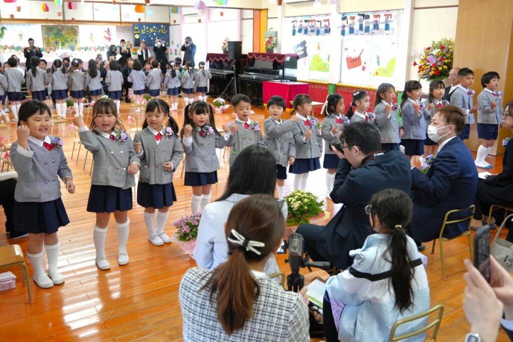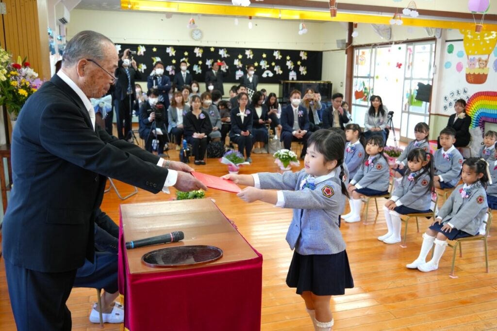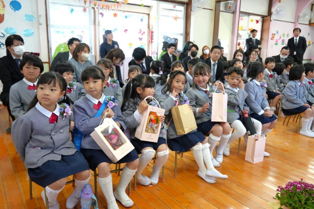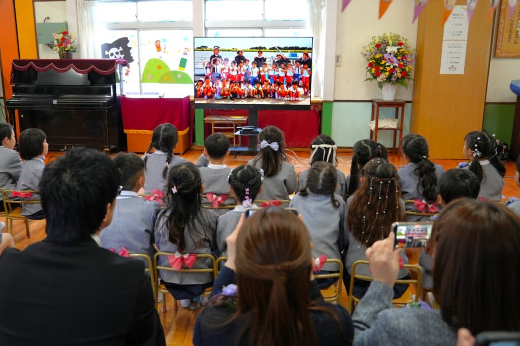 風は少々ありましたが、春らしい穏やかな天候のもと、第52回卒園式をおこないました。きちんと所作ができ、凛々しい姿をみると、本当にりっぱに成長したと思いました。最後は大きな声で元気に歌を歌い、卒園式を終えました。その後、クラス役員主催の「卒園を祝う会」を行いました。役員さん作成の「スライドショー」の企画も見事で楽しい時間を過ごせました。そつえんおめでとう!がんばれよ!
